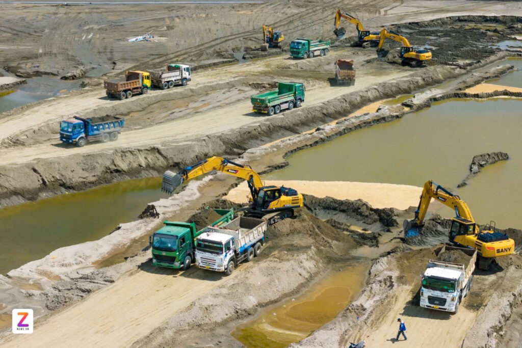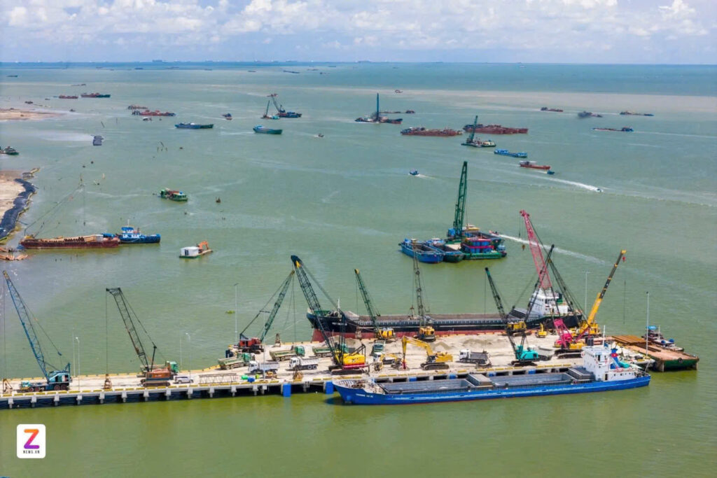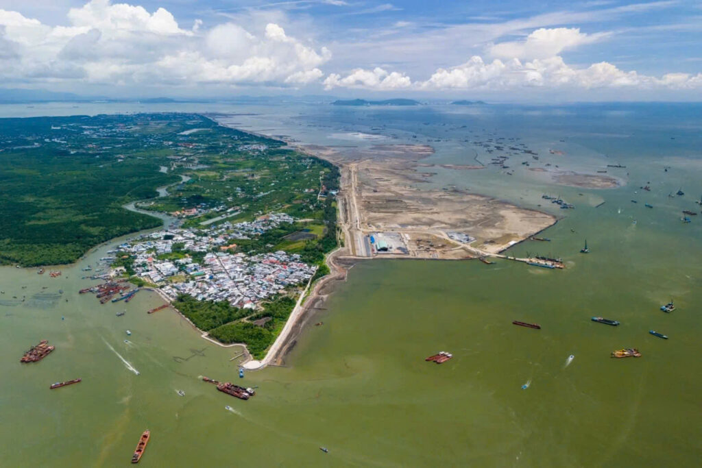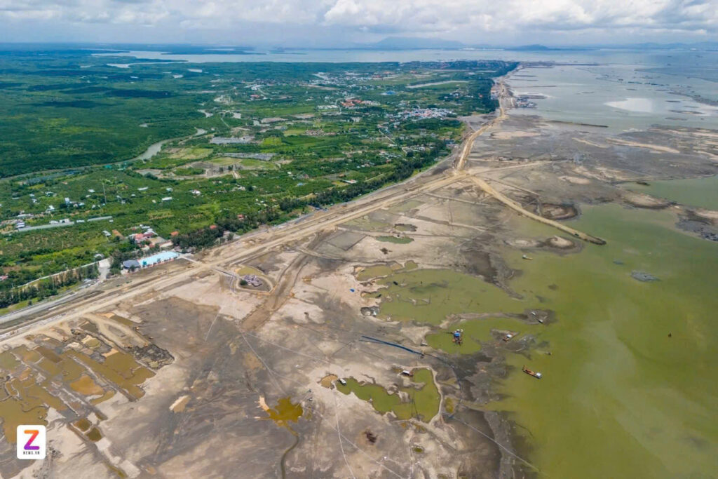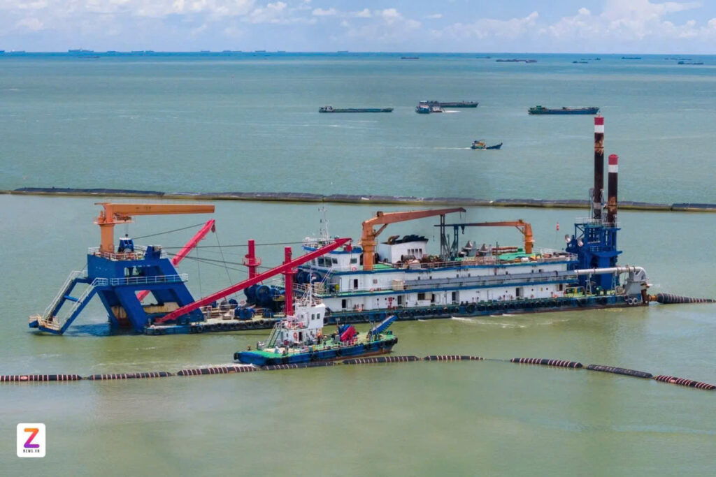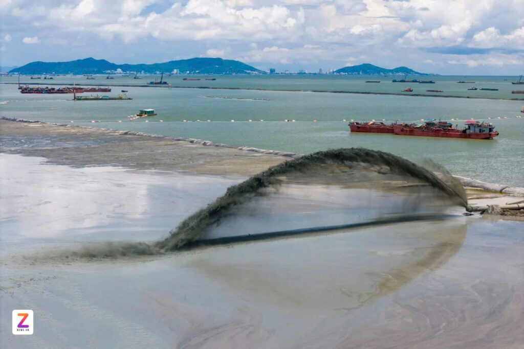 - San lấp Lấn biển: Hàng trăm sà lan, ô tô, máy xúc được huy động để lấn ra biển hàng trăm mét.