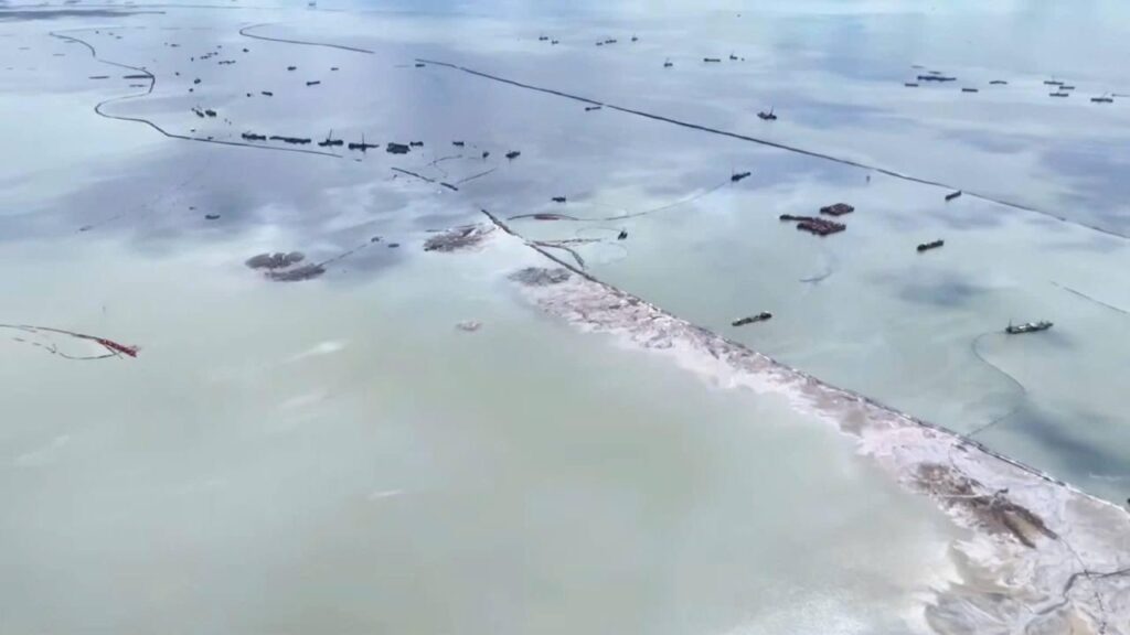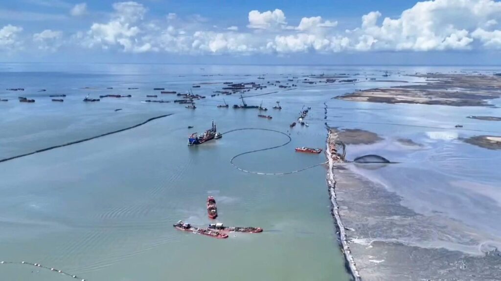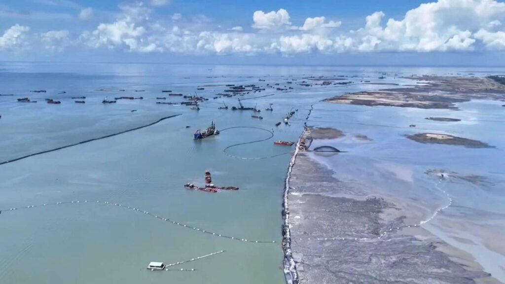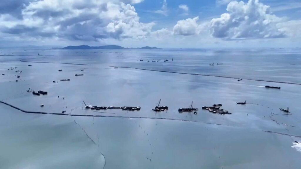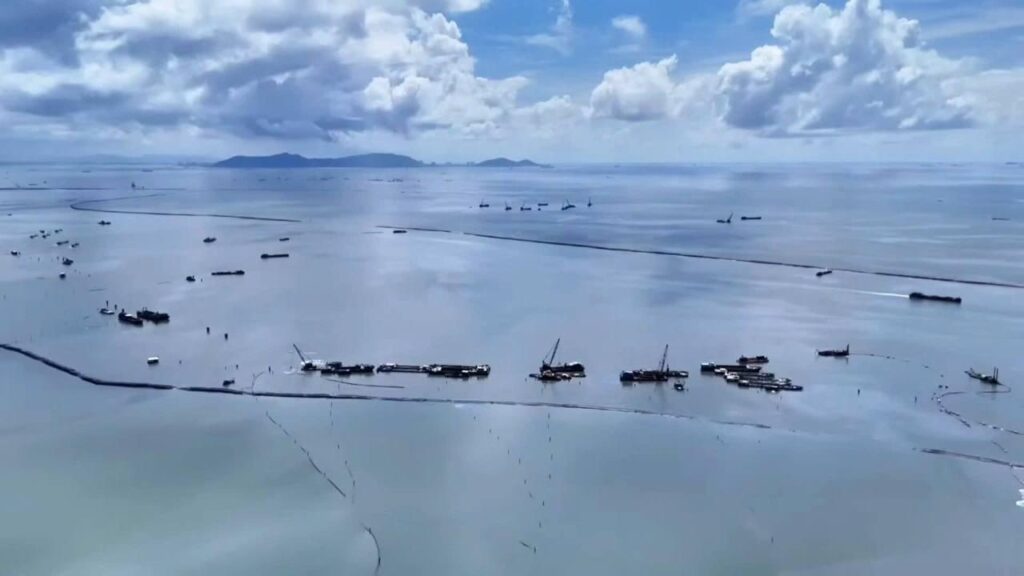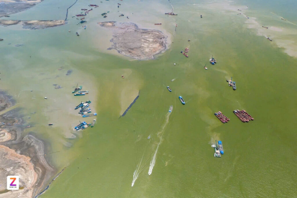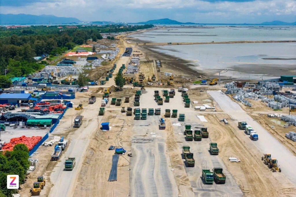 - San lấp Lấn biển: Hàng trăm sà lan, ô tô, máy xúc được huy động để lấn ra biển hàng trăm mét.